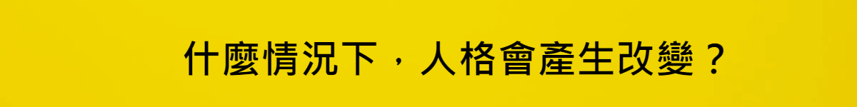 一般而言,人們傾向讓自己處在舒適圈,用自己舊有的習慣方式、待在習慣的場域、面對熟悉的人群,因為這樣運作起來比較不費力。然而在某些情境下,我們可能會主動或被動改變自己的人格特質,像是我們對現狀不滿意、我們期待成長學習,或者當前環境不支持我們的原本特質。舉例來說,某些時常熱心助人的朋友,可能會發現自己時常幫人幫到身心俱疲,決定要好好照顧自己的需要;一些能力強且做事快狠準的主管,發現自己的能力反而讓部屬忘記要成長學習,決定要放慢給予意見的時間。
